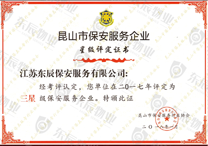 • 保安服務三星級證書