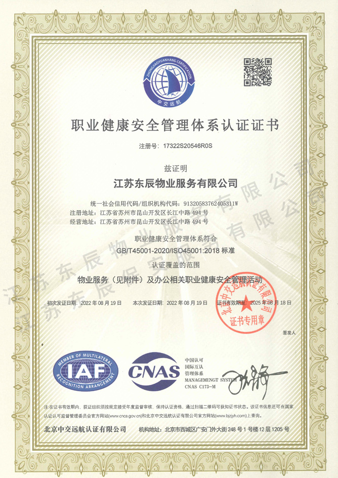 • 2022-2025年職業健康安全管理體系認證證書